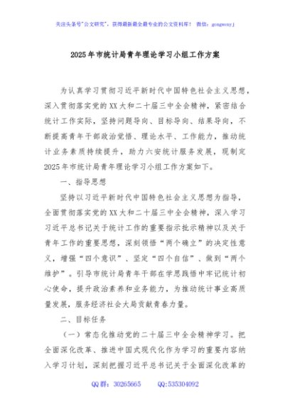 / 2025年市统计局青年理论学习小组工作方案