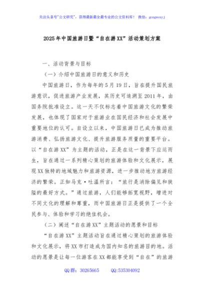 / 2025年中国旅游日暨“自在游XX”活动策划方案