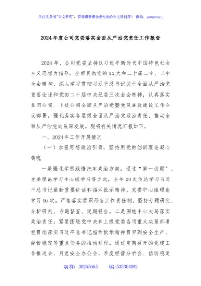 / 2024年度公司党委落实全面从严治党责任工作报告