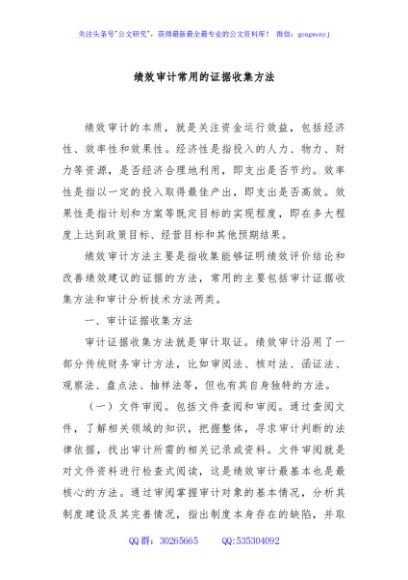 / 绩效审计常用的证据收集方法