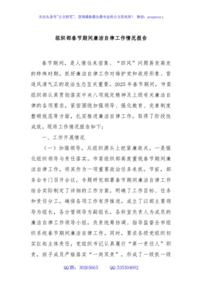 / 组织部春节期间廉洁自律工作情况报告