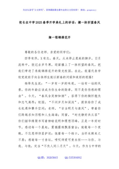 / 校长在中学2025春季开学典礼上的讲话:撷一抹祈望春风掬一程锦绣花开