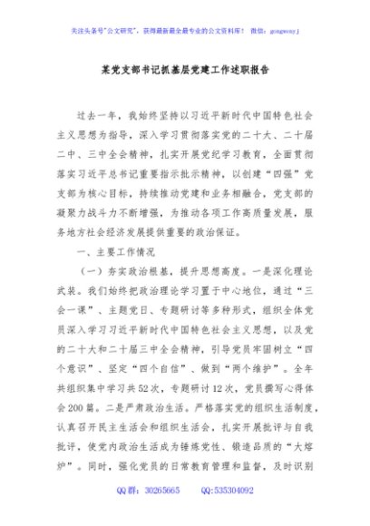 / 某党支部书记抓基层党建工作述职报告