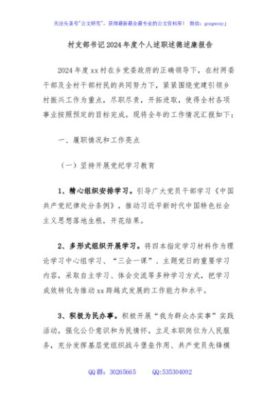 / 村支部书记2024年度个人述职述德述廉报告