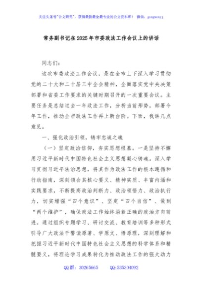 / 常务副书记在2025年市委政法工作会议上的讲话