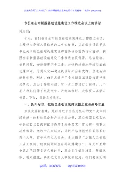 / 市长在全市新型基础设施建设工作推进会议上的讲话