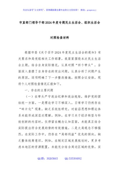 / 市直部门领导干部2024年度专题民主生活会、组织生活会对照检查材料