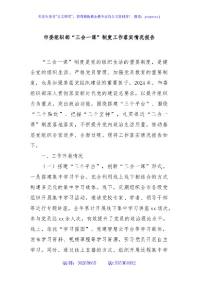 / 市委组织部“三会一课”制度工作落实情况报告