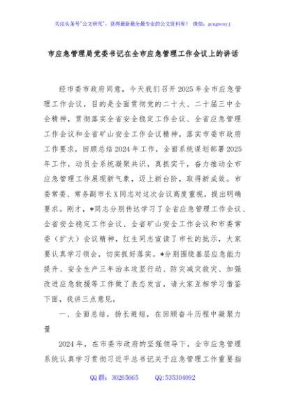 / 市应急管理局党委书记在全市应急管理工作会议上的讲话