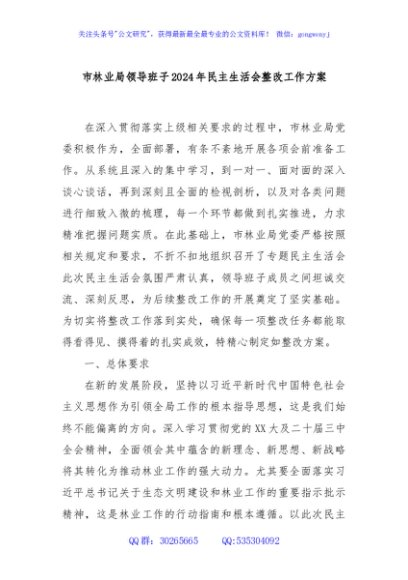 / 市林业局领导班子2024年民主生活会整改工作方案