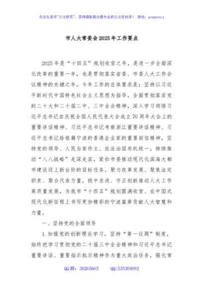 / 市人大常委会2025年工作要点
