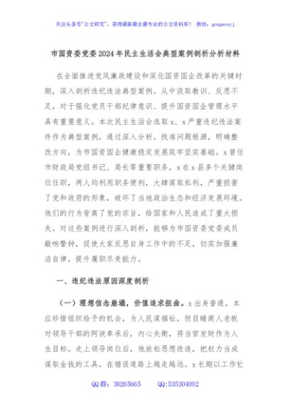 / 市国资委党委2024年民主生活会典型案例剖析分析材料