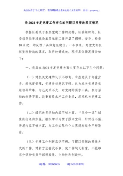 / 局2024年度党建工作存在的问题以及整改落实情况