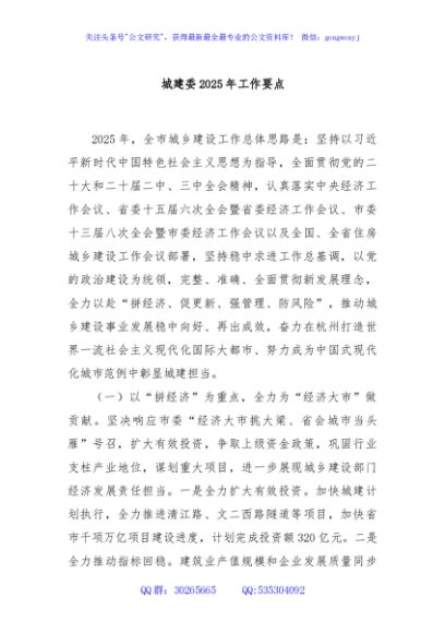 / 城建委2025年工作要点