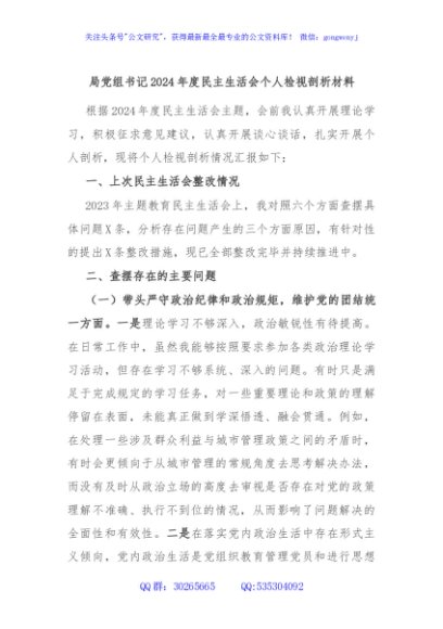 / 局党组书记2024年度民主生活会个人检视剖析材料