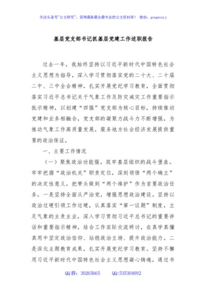 / 基层党支部书记抓基层党建工作述职报告