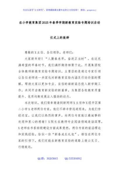 / 在小学教育集团2025年春季学期新教育实验专题培训启动仪式上的致辞