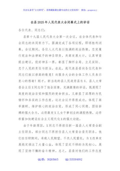 / 在县2025年人民代表大会闭幕式上的讲话