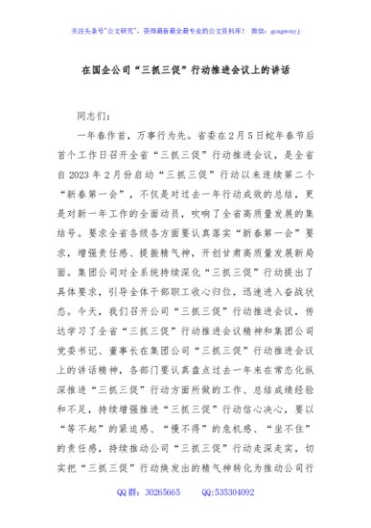 / 在国企公司“三抓三促”行动推进会议上的讲话