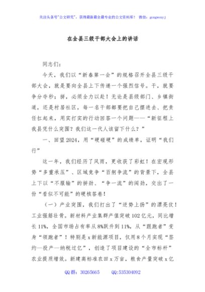 / 在全县三级干部大会上的讲话