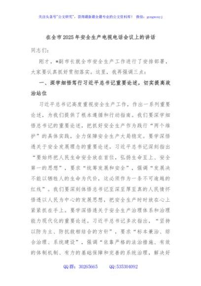 / 在全市2025年安全生产电视电话会议上的讲话
