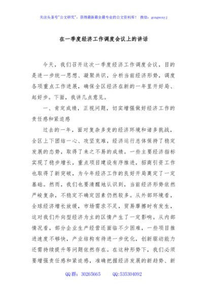 / 在一季度经济工作调度会议上的讲话