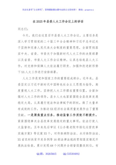 / 在2025年县委人大工作会议上的讲话