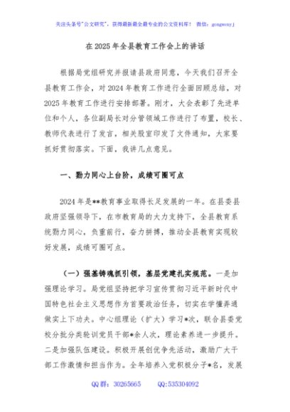 / 在2025年全县教育工作会上的讲话