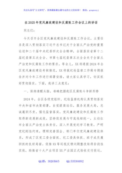 / 在2025年党风廉政建设和反腐败工作会议上的讲话