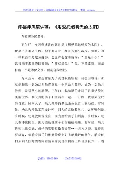 / 师德师风演讲稿:《用爱托起明天的太阳》
