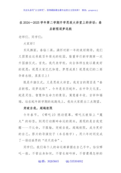 / 在2024-2025学年第二学期开学思政大讲堂上的讲话:春启新程逐梦远航