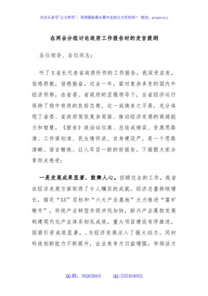 / 在两会分组讨论政府工作报告时的发言提纲 (2)