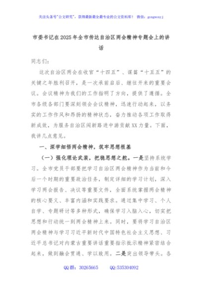 / 市委书记在2025年全市传达自治区两会精神专题会上的讲话