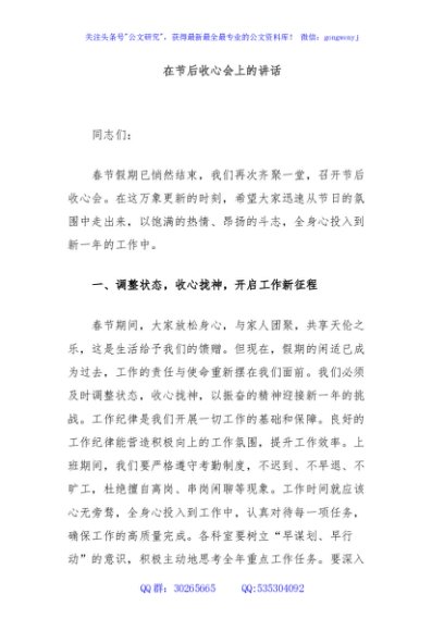/ 在节后收心会上的讲话