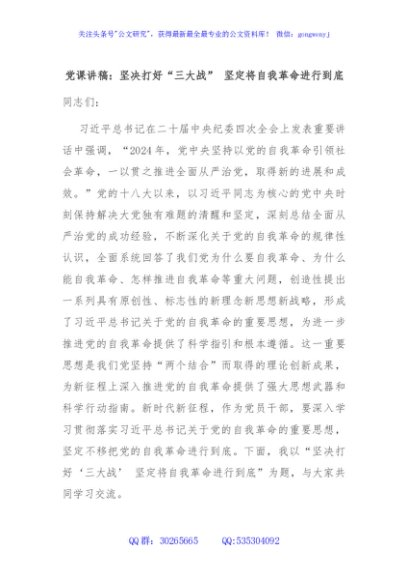 / 党课讲稿:坚决打好“三大战” 坚定将自我革命进行到底