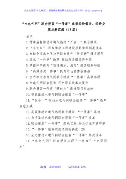 / (17篇)“水电气网”联合报装“一件事”典型经验做法、经验交流材料汇编