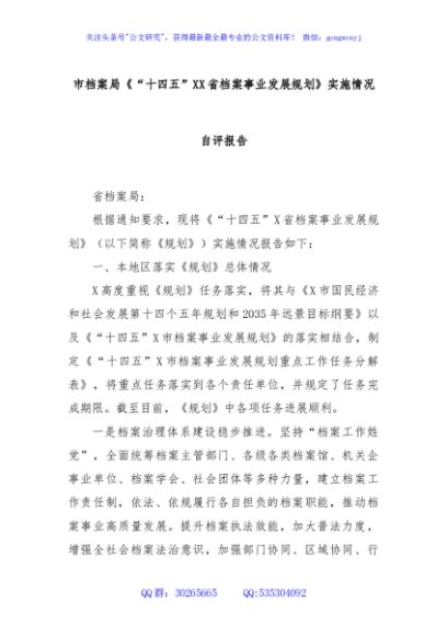 / 市档案局《“十四五”XX省档案事业发展规划》实施情况自评报告