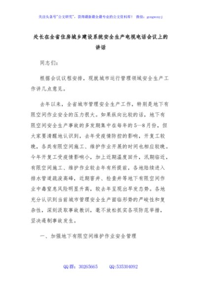 / 处长在全省住房城乡建设系统安全生产电视电话会议上的讲话