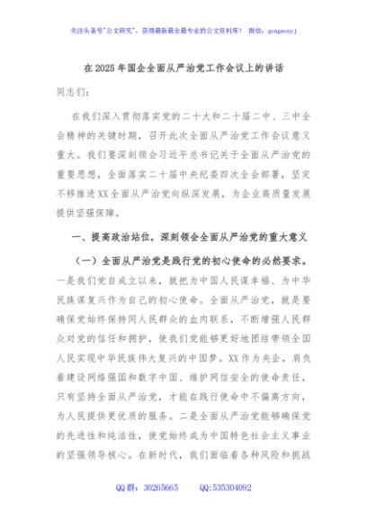/ 在2025年国企全面从严治党工作会议上的讲话