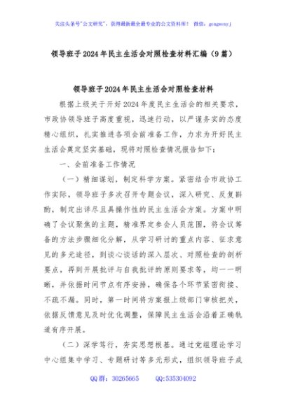/ (9篇)领导班子2024年民主生活会对照检查材料汇编