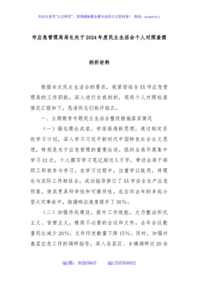 / 市应急管理局局长关于2024年度民主生活会个人对照查摆剖析材料