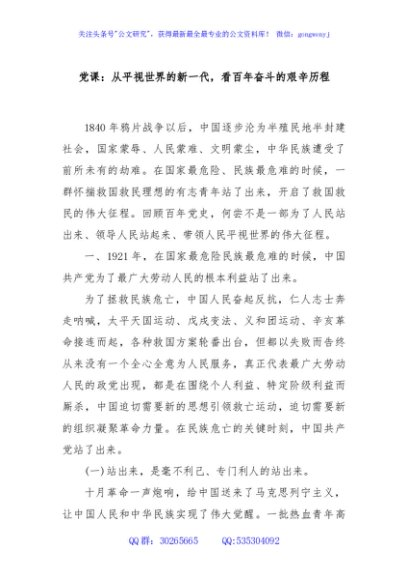 / 党课:从平视世界的新一代,看百年奋斗的艰辛历程