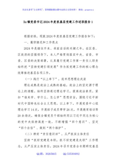 / Xx镇党委书记2024年度抓基层党建工作述职报告1