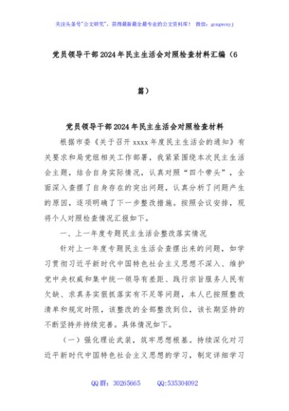 / (6篇)党员领导干部2024年民主生活会对照检查材料汇编
