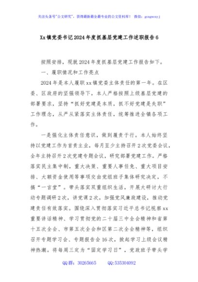 / Xx镇党委书记2024年度抓基层党建工作述职报告6
