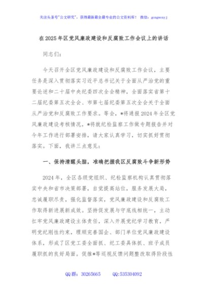 / 在2025年区党风廉政建设和反腐败工作会议上的讲话