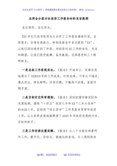 / 在两会分组讨论政府工作报告时的发言提纲