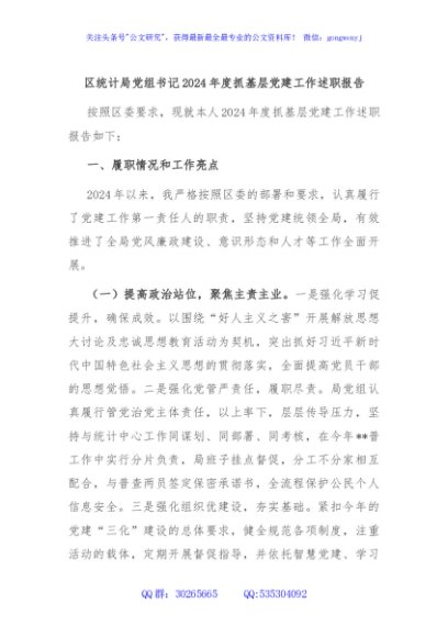 / 区统计局党组书记2024年度抓基层党建工作述职报告