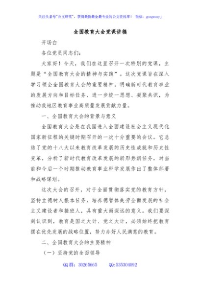 / 全国教育大会党课讲稿