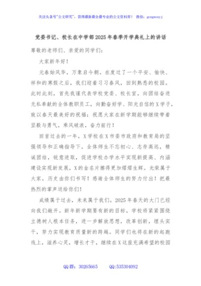 / 党委书记、校长在中学部2025年春季开学典礼上的讲话